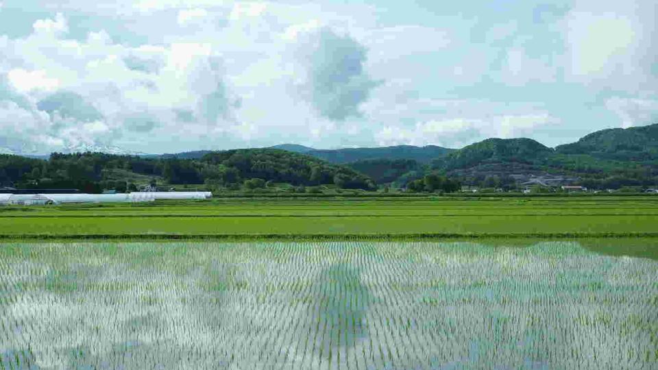 雪解けの季節は優しい日差しに照らされ、昨年の稲刈り後の田んぼが顔を出します。雪に解けた土の香りと相まって“春が来た!”と実感する瞬間です。