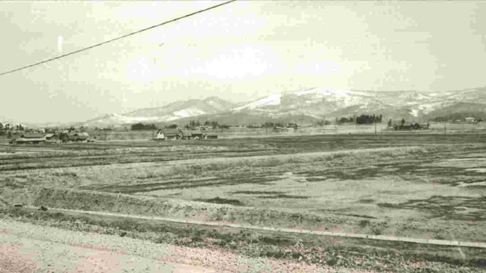 スキーはすぐ近くにある将軍山で楽しんでいました。北星小学校に向かう側の急な斜面で滑り、麓にある雪に埋もれた小屋をジャンプ台に使っていたそうです。学校のスキー授業でも将軍山を使っており、山までは学校の裏側からスキーを履いたまま、田んぼの上を通り向かったそうです。将軍山の方面に住む子どもはスキーで圧雪されたこの道が近道になることから、冬は通学に使っていたとか。